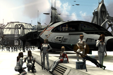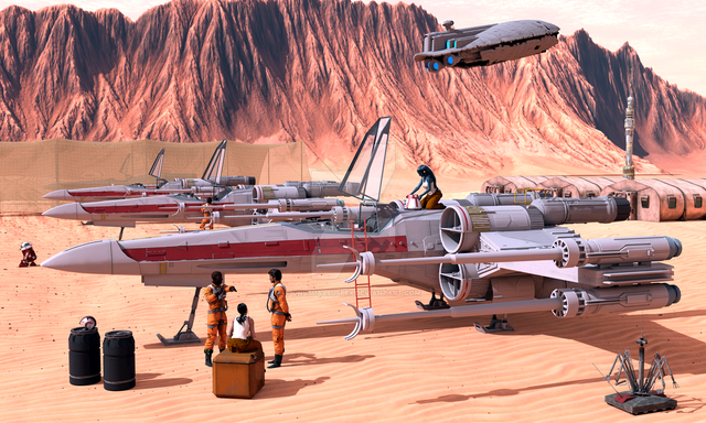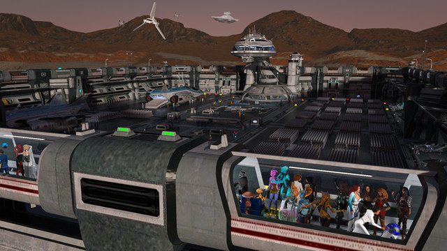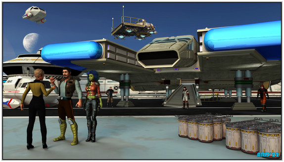 The texture work really adds a layer of depth to the image and I like that the huts now look like they belong to the ship. I just hope there aren't any Klingons hovering overhead...