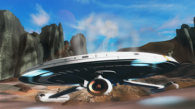 Ooh! Nice touch "breaching" the outer hull of the shuttlecraft! Those are just textures, yoy say? You didn't "rip" the geometry or use transparency maps and position anything behind the "holes"? Then I can only guess you applied PhotoShop type "drop shadows" because those "hardware guts" really appear to be "behind" those "gashes".