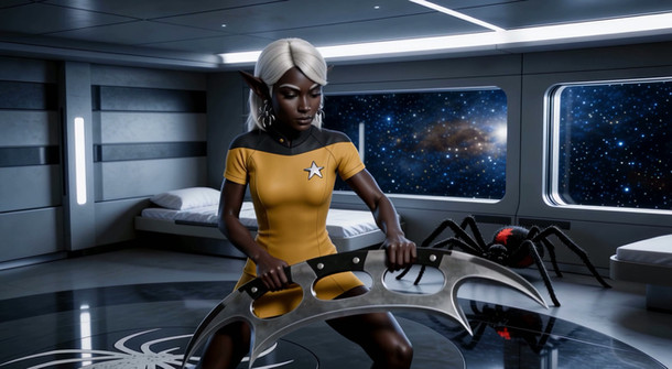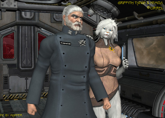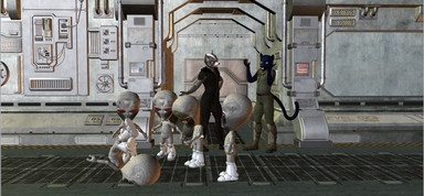 Having some fun with Bill's Phasicle crewmen. Mzzkiti and Thesspiahn.. Looks like Mzz caught some sort of space bug..Thespian: Lieutenant, you need to report to the med bay now... or I'll have to implement drastic measures.....
