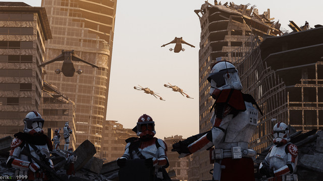 Good use of background atmosphere with the hazy, slightly out-of-focus look.Ā Brings much more believability to the work.