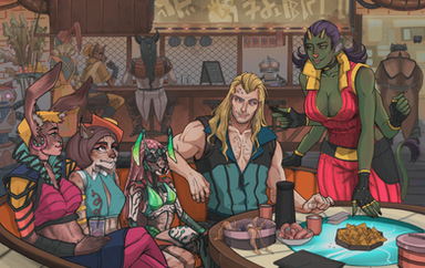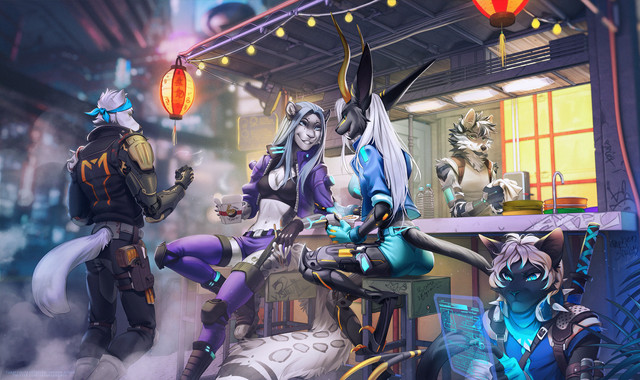 I'm flattered at the fact you composed, rendered and uploaded a piece showcasing a couple of my personal characters (as well as another pair waaaaay in the background).