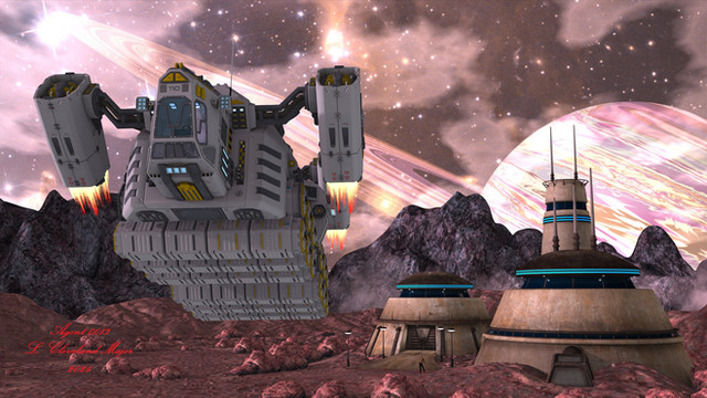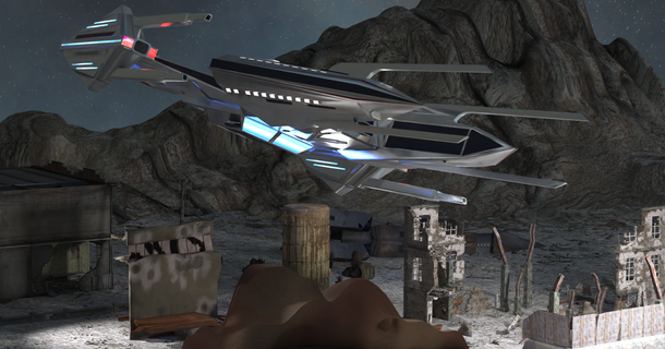 Playing with a Modified Starship Ranger 21 by AcharyoPolina found at DazDeleted some Polys, rezoned some Materials and added some greebles and Nurnies.