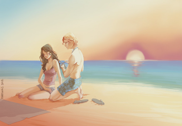 I saw this and instantly fell in love with the colors, not to mention the gorgeous scenery and fun bit of chemistry going on between the two characters. It's a beautiful piece! I really like the style too.