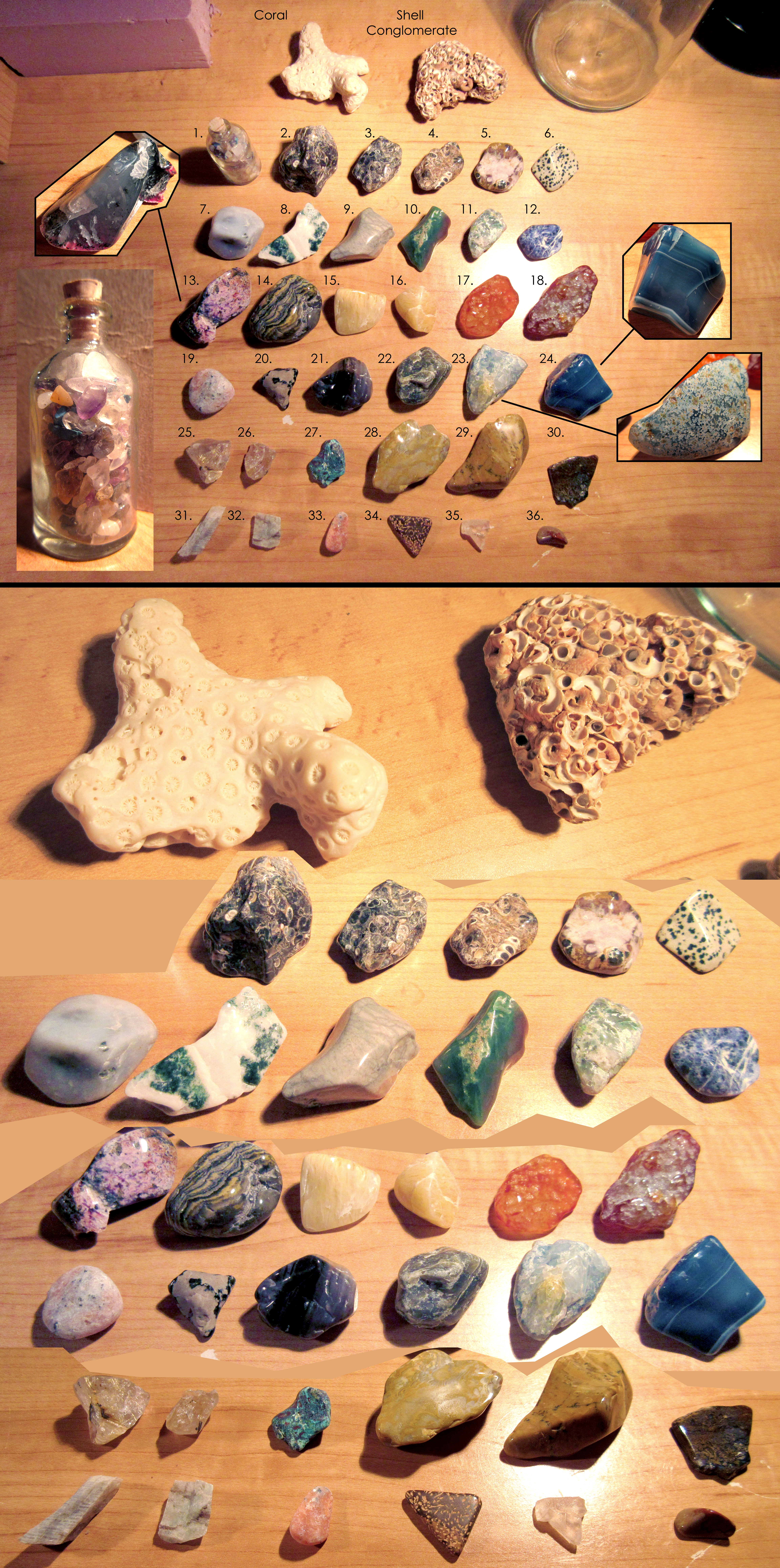 These rocks are so lovely! I also collect random pretty stones I find on trips. I use them to decorate my bathroom sink :3