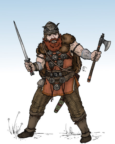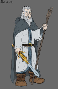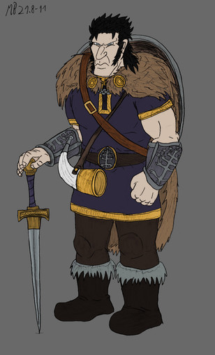 Here's my take on Aragorn, a.k.a "Strider". I've taken inspiration from different versions of Aragorn in previous adaptions, but also from elsewhere. A while back I found a very interesting article comparing Aragorn and Robert E. Howard's Conan, as well as their respective cultures, and showed remarkable similarities between each of them. So I've taken slight some visual cues from artwork of Conan. The article can be found here: [link] I've also taken inspiration from how Christopher Lambert looked when he played Connor MacLeod in the original (and only good) "Highlander".I decided to make the sword Anduril look a bit more extravagant and regal-looking. The basic design is inspired by the ones wielded by Templars during the Crusades. Because "Anduril" means "Flame of the West", I decided to put a flame-motif on the sword.