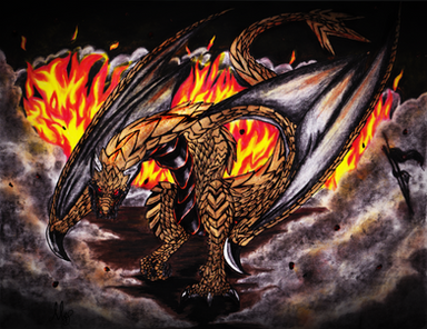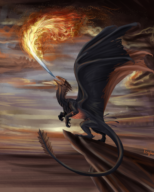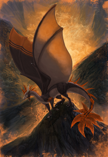 Very fearsome! I love how powerful their pose is with the wings spread out like that. Nice work with the background too!