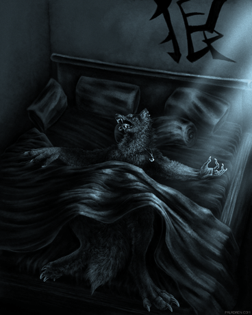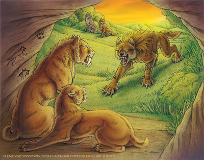 I also made myself a big challenge with this piece. I wanted to not only render the fur of the werewolves right, but also do the background as good as them and play with the contrast, shadows and highlights. As for the Alpha werewolf, I didn't mean him to be a bad werewolf, I just wanted a nice dramatic contrast - him dark while the sun shining from behind, nice dark figure. Everything was painted with my imagination, I enjoyed painting this very much and I have to admit, I'm quite pleased with the result.