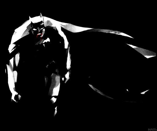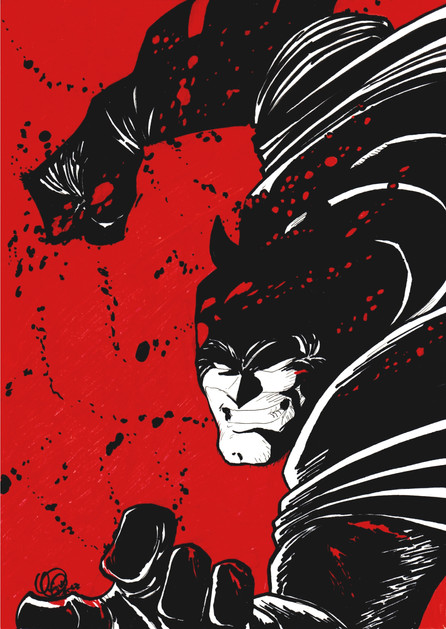 It's so cool! I love batman and this just really suits him. I like that the blood looks like a landscape too with his bat ear things and all. I dunno, I see trees