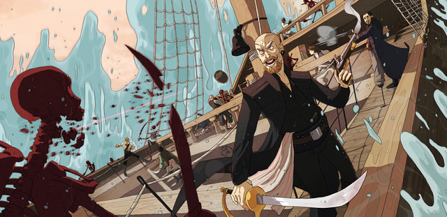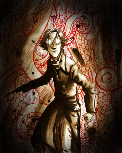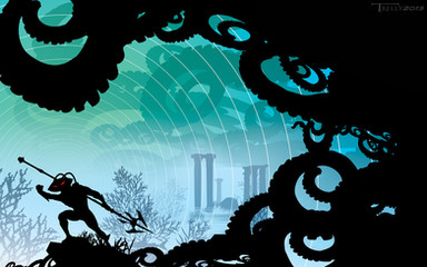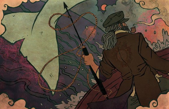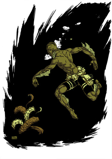 Wow! Β I don't normally like it when someone combines realistically shaded drawings (like the man in this picture) with flat geometic patterns (like the... I guess it's an octopus' helmet?) Β Normally I think the two styles clash with each other and diminish the overall look of the drawing. Β But I feel like this piece really pulls it together! Β Kudos! Β I'm very jealous of your friend