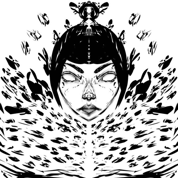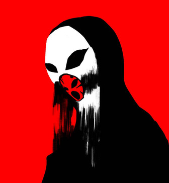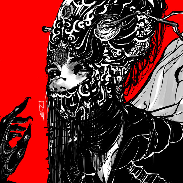 The faces pull you in , I love the dark chaos and the top reminds me of red flowers , Very cool !