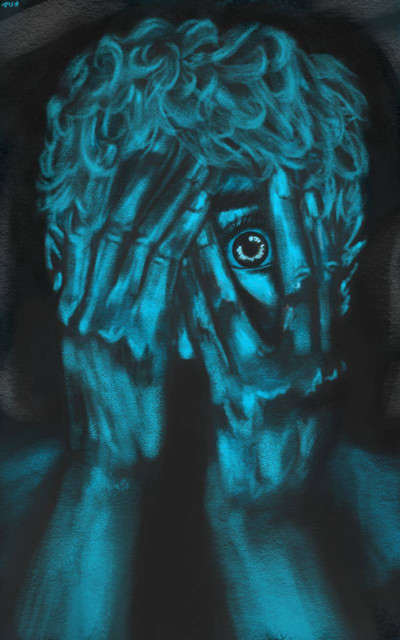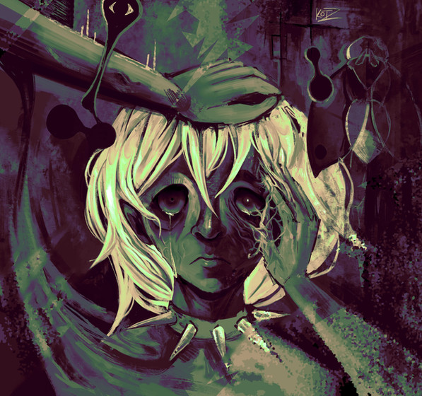 I dont really know what to say, the picture is so jarring, more so once yu see its title. I'm not 100% sure what it means, but the fact that you have no mouth in the picture says something... (pun intended.) I feel like this could be interpreted in so many different ways, unfortunately im not so good at that kind of stuff; that's why i'm not making a proper critique, cuz i dont feel qualified to do so. My friend Wolfdemon6663 is better at seeing the meaning behind stuff like this, and actually draws things that are slightly similar, with the sad eyes, inability to speak, and evil undertones. What i do want to say is i love the color choices.