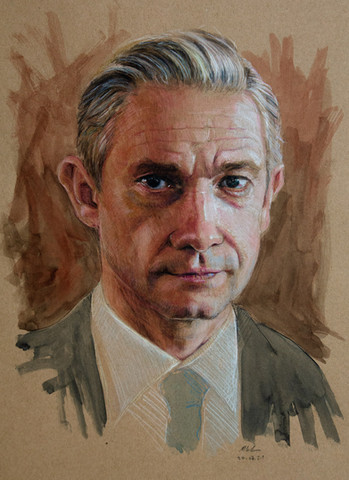 Portrait Tom HardyGraphite, Charcoal, Colored Pencil, Pitt Artist Pen, Watercolor on Craftpaper