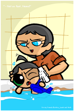Arnold would be more than happy to teach Lila how to swim! I had a brilliant idea where he does it in the Jungle Movie. I kinda got a little carried away where the kids are dirty and bathe in the lake. Arnold undresses and sees Lila naked and is astonished by her beautiful body. He makes a small noise and tries to duck down, but falls and Lila screams and falls in the water! Arnold jumps in and saves her! This is the perfect opportunity to teach Lila how to swim, even if it's skinny dipping! Of course a naked Helga spies on the two and sneaks up on them and drags them under a few times!