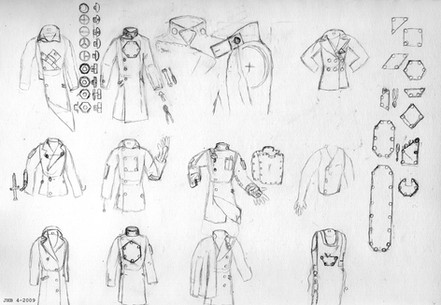 I like the design so far, the coat kinda has a mad scientist/steampunk feel to it too.