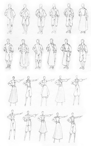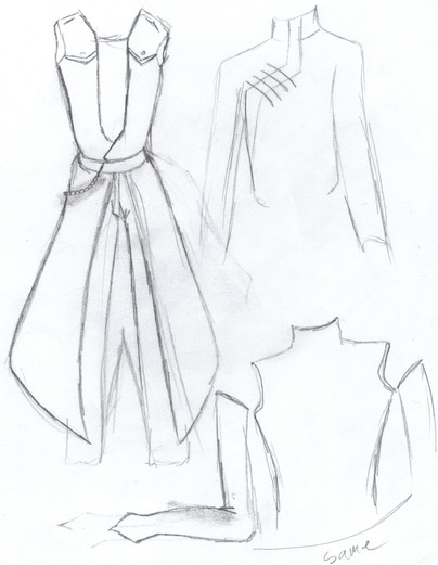 You have a lot of cool clothing stuff. It makes me think, 'Ooo, I wanna design some cool clothing stuff like that,' but... when I draw people, their clothing ends up as plain tee-shirts and pocketless pants, so I'd imagine I'm terrible at clothing design. ^_^" But I kind of wish I'd tried making something cool when I had a home ec class several years ago... I slightly modified a pants pattern to give slightly wider legs, and then after making them, I was afraid to wear them, thinking they might fall apart on me. I find it neat how your stuff doesn't look like it's about to come undone any minute. ^_^"