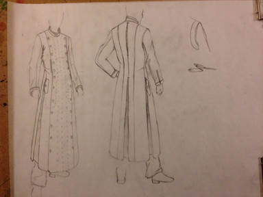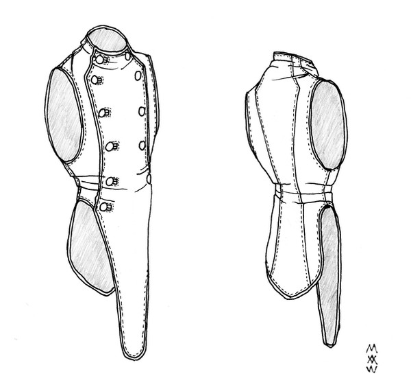 I'm planning on having it properly tailored to fit. The first sleeves will be constructed with a bend in the elbow and will taper to the wrist so I will need the front half of the arm to open up. The skirt I want to make for it will be double breasted to match the top half and will function the same. It will also have pleats on the sides and back.