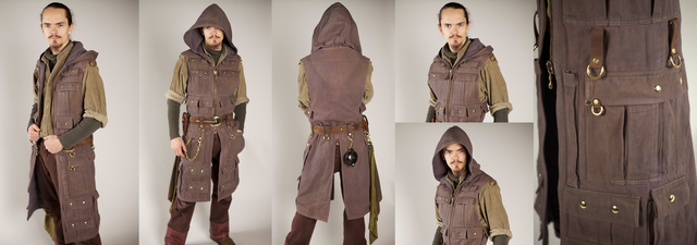 I haven't designed a new garment in a long time... not since leaving school I think. I only developed and refined the designs I've already got. This however, will probably be the first new design of mine for a while.It's a modular jacket, so the base garment is a short vest. Then you can attach sleeves, a collar, and a skirt, or short sleeves, or puffy sleeves or a tail or pockets etc. etc. etc. Right now I'm just working on the fit of the torso, and hopefully I may have time to finish it before this next winter is over so I can actually wear it.