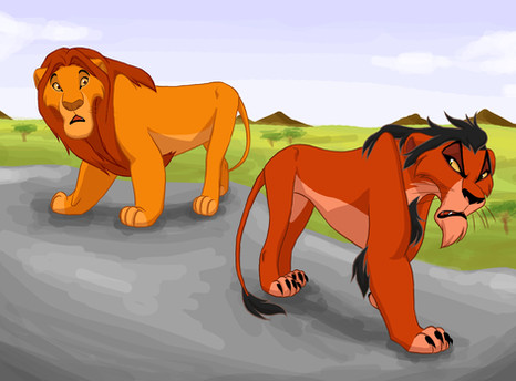 Maybe it would be better to make the grey lioness Vitani's mom and Zira and a rouge lion to have Kovu,because in the film says that Scar isn't Kovu's father.By the way great pic!