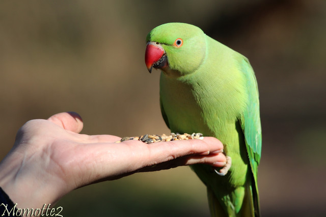 Another one of the Ringneck Parrots coming to my son for some peanuts.Related content