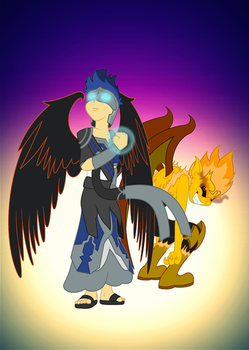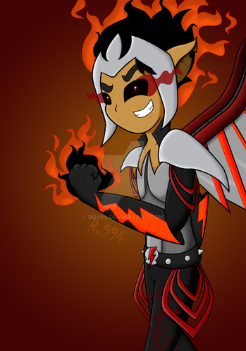 Woah, this is so amazing! I love the design so much! The detail in his clothes is fantastic. Glad I could've inpired you alongside the other creator. I think I like the name "Thanatos" best out of those two, since it matches his original name better and sounds more... destructive, I guess, haha.