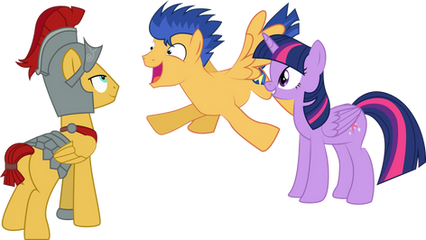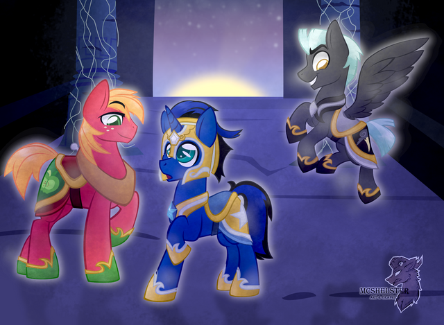 Well, about two years ago (there are still a few days left) I uploaded my first MLP fanart to Deviantart. Basically a Flash Sentry foal, disguised for Nightmare Night as his hero (and possible ancestor) Flash Magnus. Well, since I wanted to do something for this little personal anniversary, I decided to go back to work with the idea and that's how this came out.