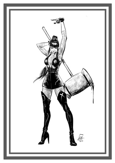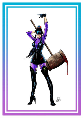 Last year I also colored this sketch by Punchline (DC Comics). She is a character with a very cute design, I really like her!The resolution is a bit low, my fault, I accidentally deleted the original ink sketch. However you can see enough I think.