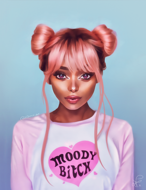 Practice art. Tried drawing a picture i saw on tumblr. Pink hair looks good with dark skin <3here's a link to the ref picture: girlswithpinkhair.tumblr.com/p…