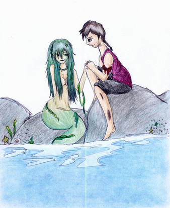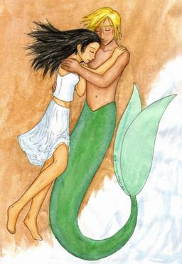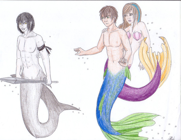 A lovely drawing. They don't look too happy about what happened. Nice job with having the mermaid leaning on the merman. The colors look amazing. Wonderful work.