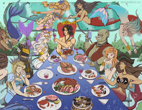 #blue #bra #colored #copic #fans #fantasy #fish #funny #girl #marker #mermaid #ocean #pencils #princess #queen #sexy #tail #traditional #mariejaneworks #environment