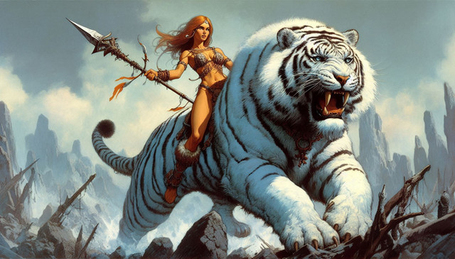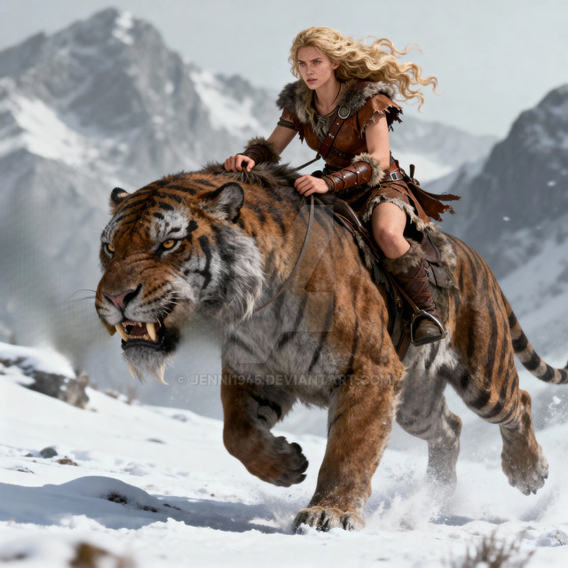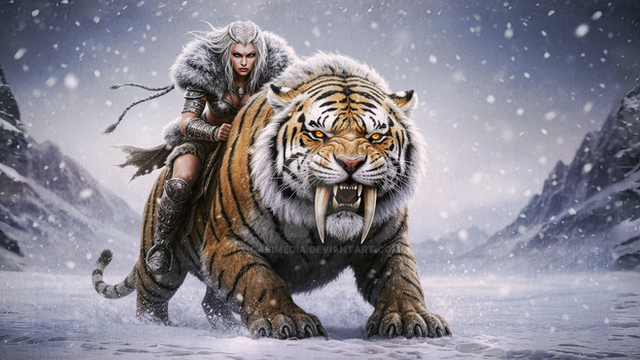 #warrior #fighter #battle #digitalart #fantasyart #characterdesign #rpg #warriorwoman #action #amazon #barbarian #beautiful #bigcat #blizzard #dynamic #fantasy #fur #hunt #ice #mount #prehistoric #riding #sabertooth #snow #spear #strongwoman #tiger #winter #woman #aiart