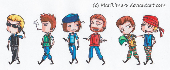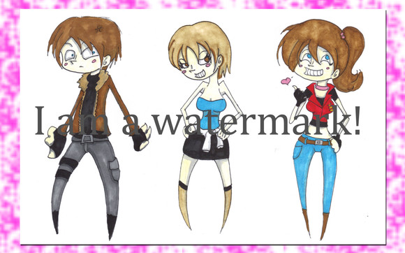 Second Commission of my last wave^^ It's the one asked by who wanted Her OC in chibi form covering her mouth and blushing for having seen Albert wesker while chris just facepalms next to her XD