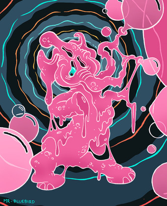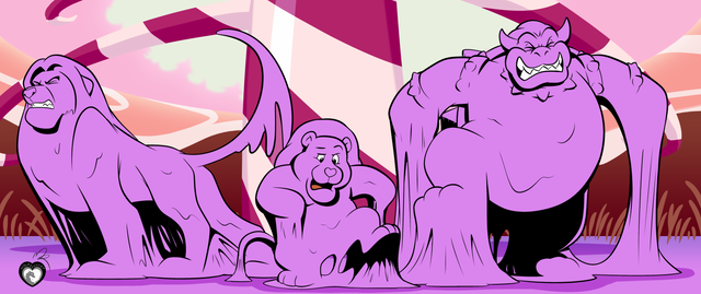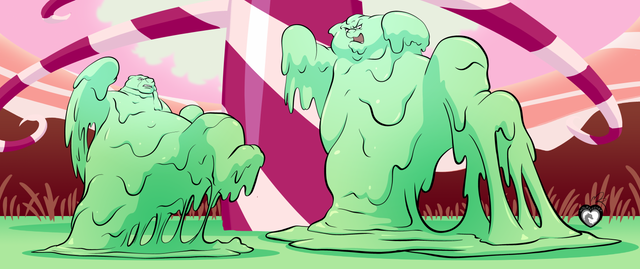 In a flash, a mechanical hose shot lots of globs of a super sticky, heavy, pink goop, which acted like the strongest glue ever, blocking the unfortunate dimension travellers into a REALLY sticky situation!
