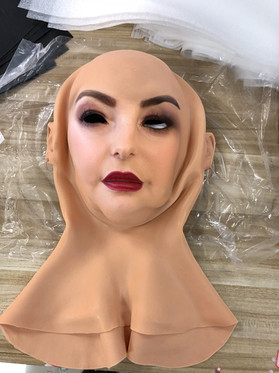 Top half from left...One pair regular underbust shapewear garment, one pair thong underbust shapewear garment (for buttock separation), Roanyer May mask, wig, silicone filled "G" cups (really an E!) with bra to keep this as a "safe" photo, steel boned corset with pelvic "flares," and shapewear briefs (used for hiding manly things!).