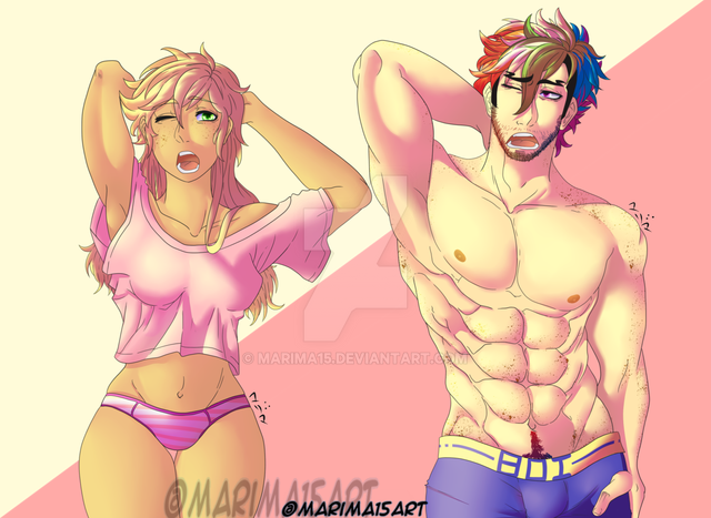 I love this art, love guy Rainbow with Girl Applejack, yeah!!