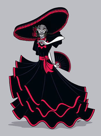 These are some illustrations we did for Halloween mobiles. They're about Catrinas, elegant skeletons originally created by Mexican artist Jose Guadalupe Posada. They're now available at Walmart's Prichos stores in Mexico. Hope you like them.Pencils & Inks: Me