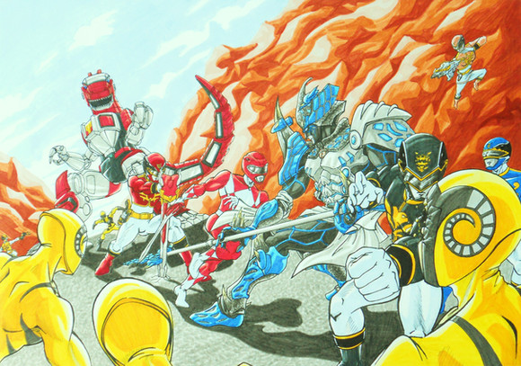 Commission for Cool battle scene between rangers!