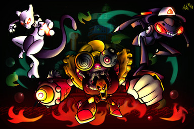 Wait, this is artwork... not E3 hype train. Well I did have loads of fun with this one in particular. Magicman is like a Robot Master Gambit corssed with Dr. Strange. Kadabra is the original Psychic monster featured in the anime.