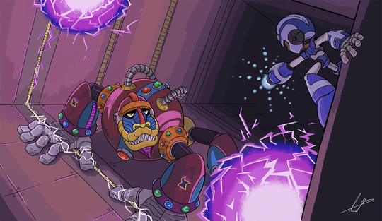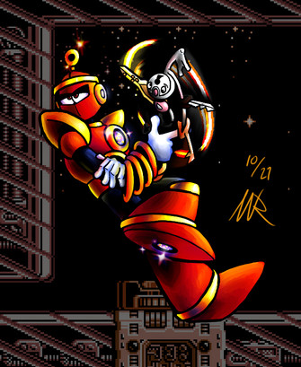 WOO BOY! This one was a doozie. All dem Springs and sproings, foils and coils... Madness, and makin' me dizzy just lookin' at em'. Springman is such an underrated Robot Master, for how silly his design is. Personally, I like how flexible he is and the idea that most the robots in 7 were made with cheap parts. (Wily's old car, a fun house dud, and even plain ol' junk) so it's no surprise that wily just took apart abunch of toys and made a robot master outta him. How diabolical. And Spoink is... well DUH!Springman (Capcom)