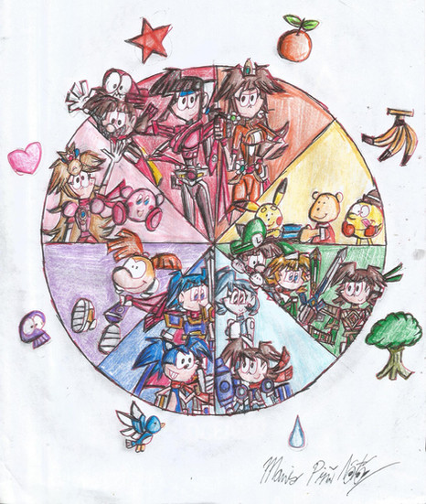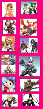 These will be the characters I will use regularly in Super Smash Brothers Ultimate. However, the bigger squares are the ones who'll be my mains.-Mains: