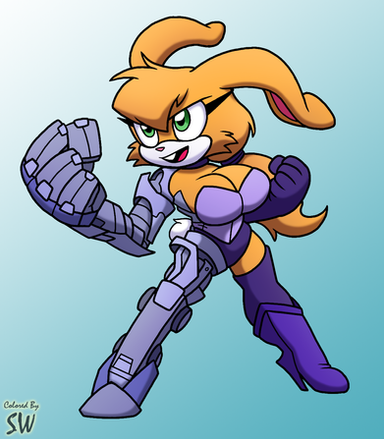 This request is for leoryffHe wanted Bunnie Rabbot in a cheerleading uniform for R0b0s, an original he helped create. The uniform itself is pretty cool and was really fun to draw, I like the idea of the skirt being pixelated and see-through.
