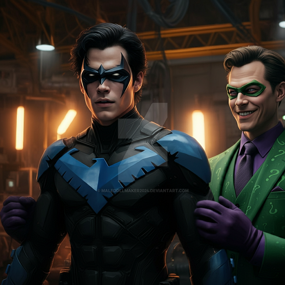 #superhero #nightwing #riddler #aiart #nightwingdc #nightwingdickgrayson #superheroperil #riddlerdc #riddlervillain #nightwingperil #bingimagecreator #superherovariant #nightwingvariant #googleimagefx