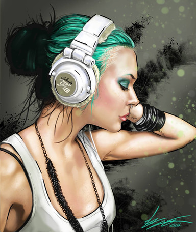 To crit you, and there's not much to say, I suggest redining or blurring the area around her right ear, and varying the thickness of your brushstrokes a bit more in the hair -- either that or or making them less obvious.