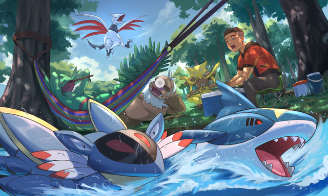 #arcanine #bridge #mega #nature #pokemon #relax #river #shiny #swampert #team #town #trainer #mark331 #florges #old #zeraora #kleavor #hydrapple
