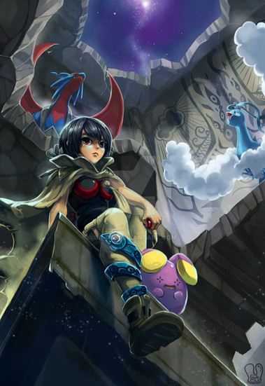 Awesome! I'd ask for a commission of my Alpha Sapphire team and my persona if I had the amount of points needed... What is that little tree thing called? I honestly can't tell what it is...