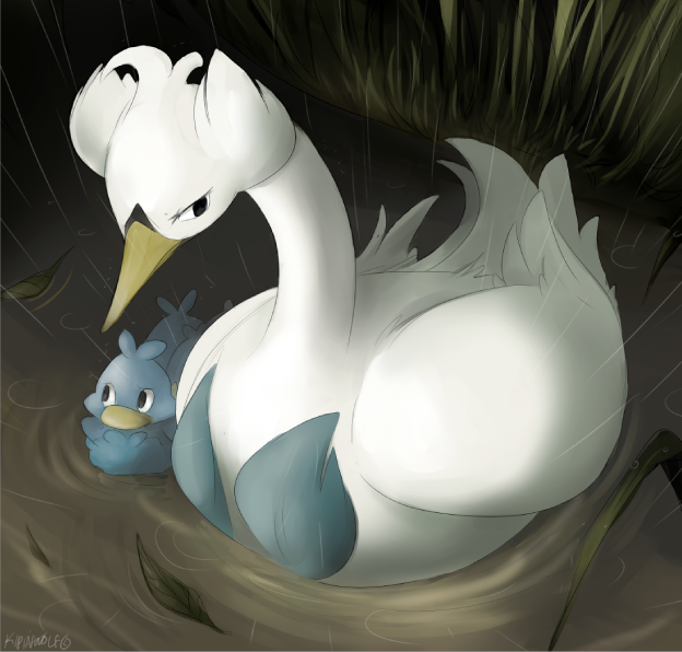 #duck #fanart #flying #nature #nest #pokemon #swan #swanna #water #mark331
