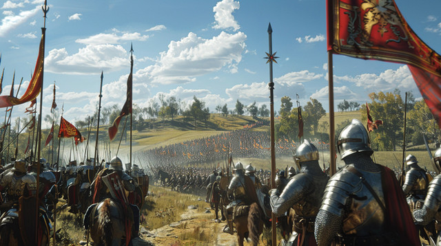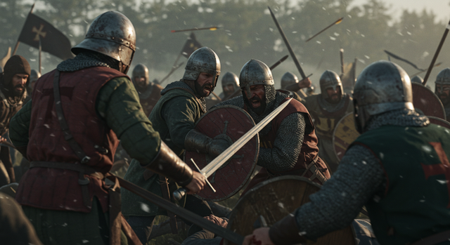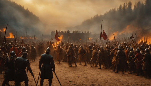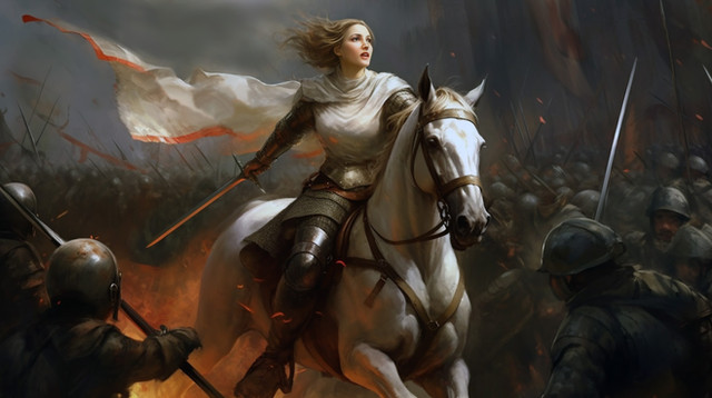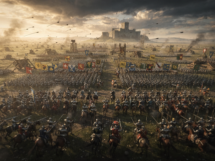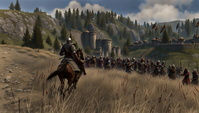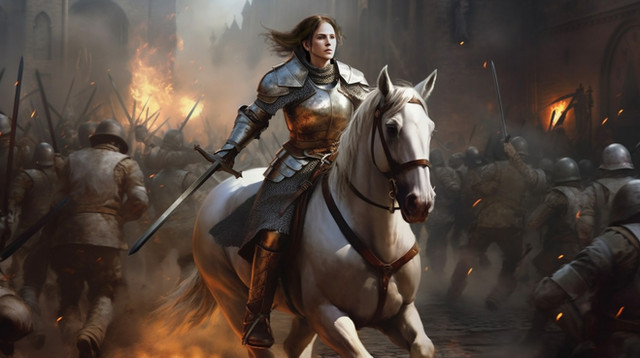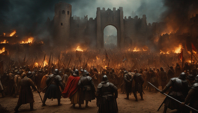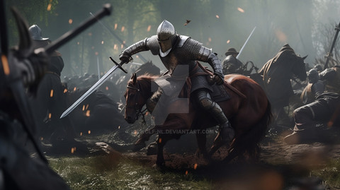 A series of images inspired by the war in AquitaineBelow the walls of the castle, the knight's charge strikes home ...