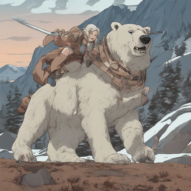 Riding her bear across the mountain on Christmas eve.An image (loosely) inspired by the traditional Norwegian fairy-taleΒ Kjetta pΓ₯ Dovre.