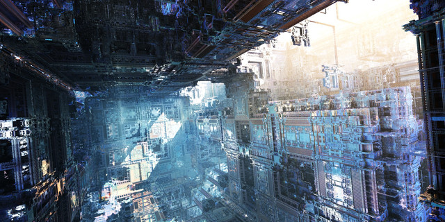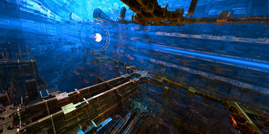 It surely appears to be a circuit from some planet-sized computer. I just love the architecture and the shimmering light. Simply outstanding!