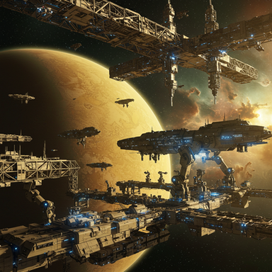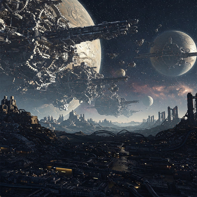 depicts the 200km long GSV – General System Vehicle – ‘Empiricist’ and its attendant entourage of ships approaching the planet Zyse to celebrate