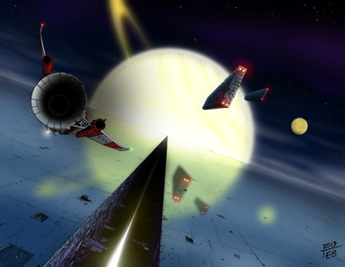 Beautiful.Β It reminds me of a combination of Chris Foss' work and the art of the late, great Peter Elson.